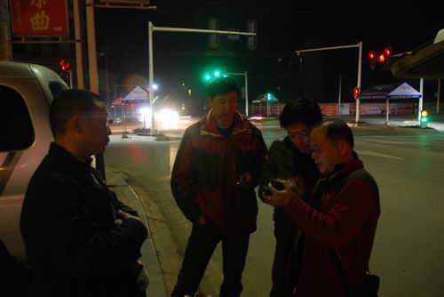 3月5日晚9时,荆江河道勘测中心另一测量小组抵达枝江,在驿站门前与查勘组进行GPS仪器交接。