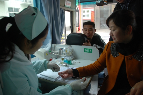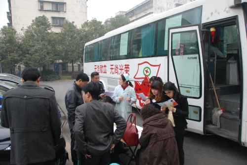 上午九点左右,荆州市中心血站爱心捐血车停在单位门口,医务人员向前来献血的职工详细介绍献血的基本常识与注意事项,初次献血的职工也就各自关心的问题向医务人员进行的咨询。