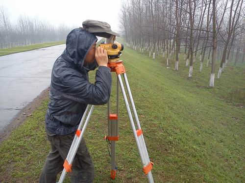 目前,各组已全部完成了测区的控制测量,其间,有两天是在雨中进行的控制测量。