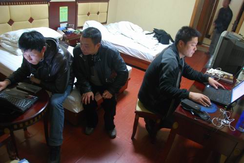 从22日至27日,三个野外作业组均早7对晚7的开展测量,晚7时30分回到驿站,匆匆吃完晚餐,马上又投入到数据采集、内业计算及成果整理、检查中,常工作到晚10时左右。
