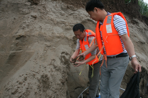 本次巡查全程364km,巡查小组对各崩岸段仔细查勘,在重点崩岸段进行取样,就崩岸形成机制和发生时期进行交流,并对下一阶段崩岸巡查内容、时机及实验研究方法进行安排。