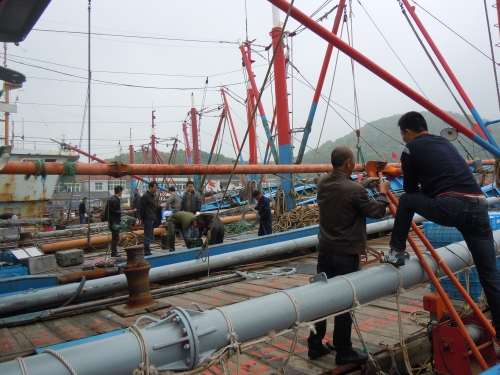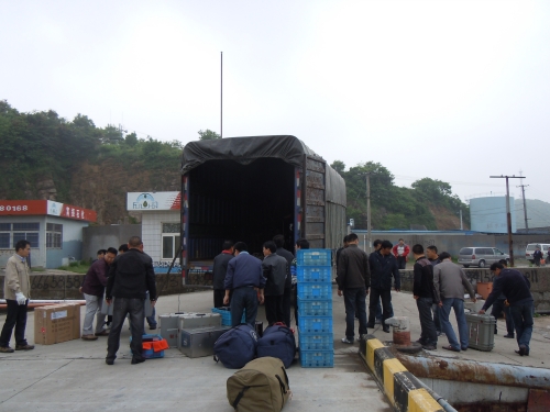5月10日,也就是我们抵达浙江省舟山市的第三天,长江口局运送测验仪器设备的大卡车抵达了测区码头,5条测验用的渔船也早早地在码头待命。