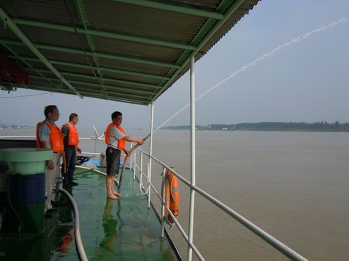 下午4时30分,培训人员在水文207轮集中进行了人员落水救生演练和前甲板失火消防演练等科目。
