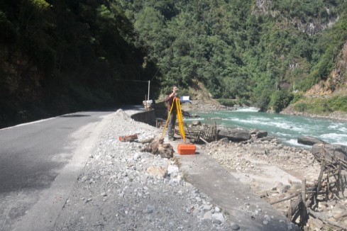 10月10日中午,独龙江水文站精心组织,利用最近难得的一个晴天进行汛中大断面测量,在人员不够的情况下,该站在水文站附近就近请了两个临时工来帮忙,通过大家的协调合做,经过近5个小时的紧张测量,终于顺利完成此次大断面测量,包括此次难度较大的跨河水准测量。