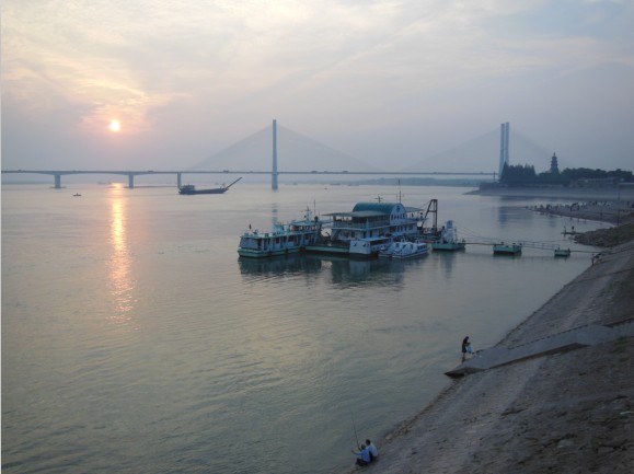 黄昏下的荆江水文码头