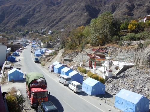 (图片在所住宾馆楼顶拍摄,214国道两旁都是救灾帐篷)