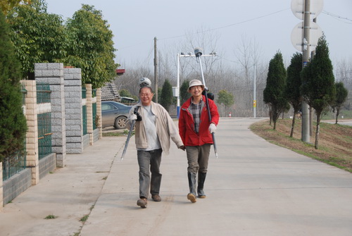 3月13日下午,荆江局河道勘测中心岸上地形测量第一、第二小组在石首河段汇合,第一小组长曾勇(右)、第二小组况太君工程师的脸上乐开了花。