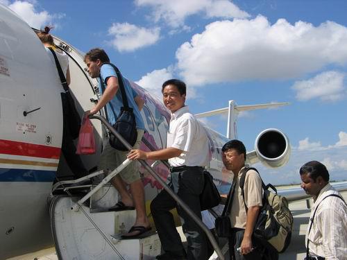 2007年4月4日,荆江局从各部门抽调精兵强将十人,组成境外水文勘测小组,于当天下午七点从荆州启程前往缅甸开展水文勘测工作。出发前的动员会上,局长唐从胜对众人的叮嘱言犹在耳,作为本次“远征”的总指挥,时年32岁的许弟兵深感责任重大。时间已经是翌日凌晨1点,火车上的过道灯早已熄灭,借着手机微弱的亮光,许弟兵又把明天的行程单查看了一遍,他极力地设想着不可预知的突发状况,认真地梳理着伊江勘测的千头万绪,心中只剩下“任重道远”四个字——诸多的难题或许只有到了现场才能找到答案。历经31个小时的颠簸,6日凌晨五点半,勘测小组顺利抵达昆明。昆明巫家坝机场短暂的休整,让大家紧绷的神经稍有舒缓,走出国门的兴奋和激动掩盖了忐忑不安的焦虑,在飞机冲上云霄的那一刻,每个人心中的神圣感和使命感油然而生。