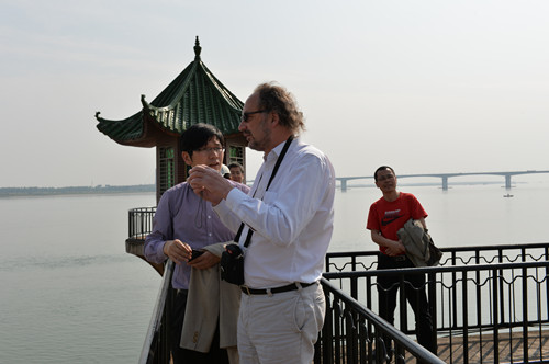 在考察期间,Paull A.Carling教授一行与荆江局科研人员就三峡坝下游泥沙问题进行交流。参观了沙市水文站水文测报设施和荆江大堤。查勘了沙市河湾河势和正在施工的腊林洲航道整治工程现场。