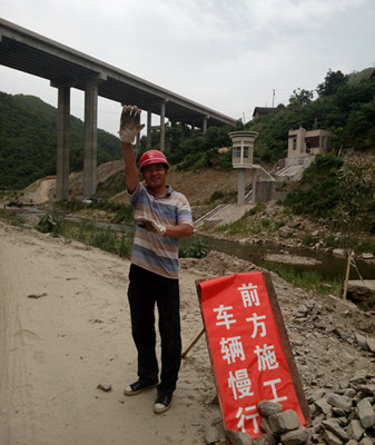 水文荆江局缆道安装组的同志们在六里坪进行缆道主索和循环索跨路施工时,为确保施工安全,特地制作两块车辆安全警示牌放置公路两头,提醒过往车辆注意,并派专职安全员站在路边指挥过往车辆通过,保证了缆道施工和过往车辆的安全。