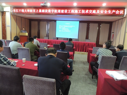 与会人员参照以上要求,联系工程建设中的实际情况,认真分析了工程实施中的技术要点,针对施工阶段的技术难点展开了热烈讨论,并提出了一系列切实可行的应对措施,为长江干线大埠街至上巢湖段数字航道建设工程的顺利实施打下了坚实的基础。