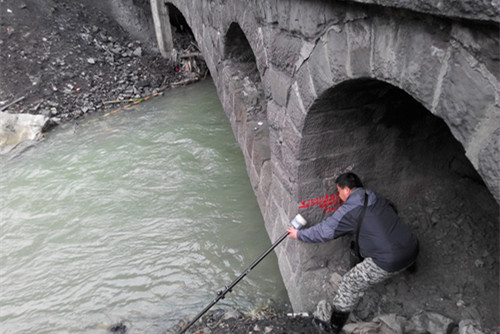 找洪痕、定控制,熊超、冯荆州走遍了整个村子。负责洪痕、控制点调查的人员需要找村民帮助,为了保证调查数据的准确性,往往会多找几位村民询问洪水的洪痕。在确定洪痕的位置后,不管是在房屋背后的垃圾堆附近还是在水流湍急的桥下亦或是在地形险峻的岩壁上,调查人员都义无反顾的到达指定位置,画洪痕、测坐标。