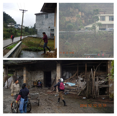 次日清晨,一进入王家镇的地界,明显感觉到气温陡降,安排好驻地后,调查组立马架设基站,投入战斗。偏偏天公不作美,下午便下起了雨,调查组为了按时完成工作,毅然决定雨中测量。还是一样的断面测量、房屋调查和洪痕调查,调查人员迅速行动,很快进入到了各自的角色中去。寒冷的温度和冰冷的雨水并未挡住调查人员前行的脚步。雨中测量,调查人员已顾不得被雨水淋湿的头发、脸庞和衣服,反而要不断擦拭被雨水打湿而变得模糊的仪器显示器;用身体保护住纸质房屋调查表和仪器关键部位;由于下雨仪器接收信号受到影响,调查人员又要不断调整位置或在雨中等待。尽管环境艰苦,调查组仍然凭着坚定的信念和不怕苦、不服输的水文精神出色的完成了任务。