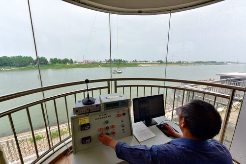 荆江局副局长刘黎明告诉我们,荆江局的水文缆道从查勘、设计、加工、安装全靠自己的力量完成。荆江河流都是通航河流,建设缆道两岸必须架设高高的铁塔,增加了缆道施工难度;缆道控制系统采用自主研发制造的EKZ-1型智能操作系统,该系统智能化程度较高,操作简便,能现场输出测验成果。