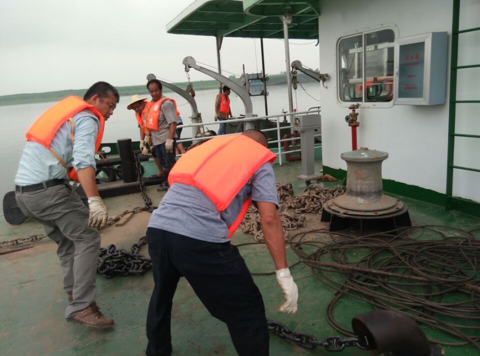 经过两天的齐心协作,监利水文站完成新趸船定位工作。