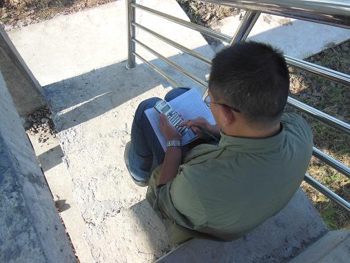 台上一分钟,台下十年功。小组在人员紧张的情况下,精心布置,兵分两路同时展开工作。每辗转一个地方,都是高质量、高效率地开展工作。测量小组途经之地布满荆棘杂草,乱石堆,大家一边测量,一边相互嘘寒问暖。测量结束,立马在现场计算整理。在外测量,早起晚收工是家常便饭,偶尔也想好好休息,但一想到资料还未整理,这个瞌睡也就睡的不踏实了。就这样,晚饭后,同志们继续挑灯夜战,整理完后并自检,然后再一起布置次日工作内容。